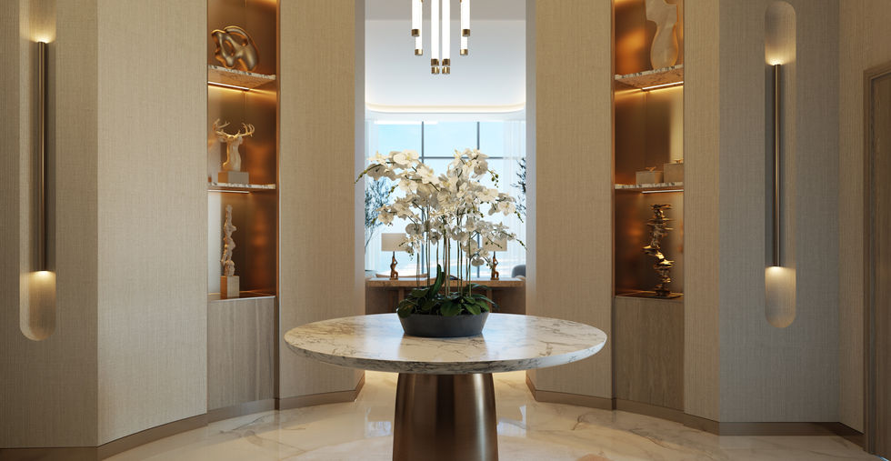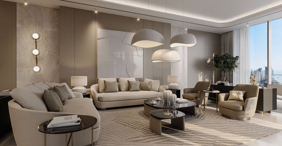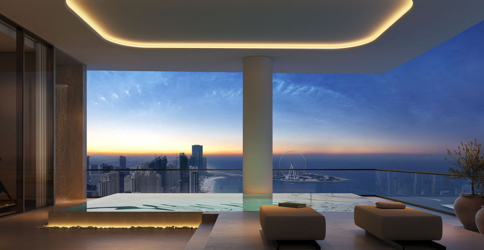 Internal finish of kitchen cabinets in veneer high-pressure laminate Double bowl kitchen sink Amenities Outdoors: Infinty Sky Leisure Pool BBQ Family zones Outdoor private cabanas Outdoor gym Outdoor Yoga zone Health: Indoor gym Steam and Sauna Ice Showers Dining & Entertainment: Cafe and Dining Area Executive Serviced Lounge Valet Concierge Indoor Cinema Co-Working Spaces